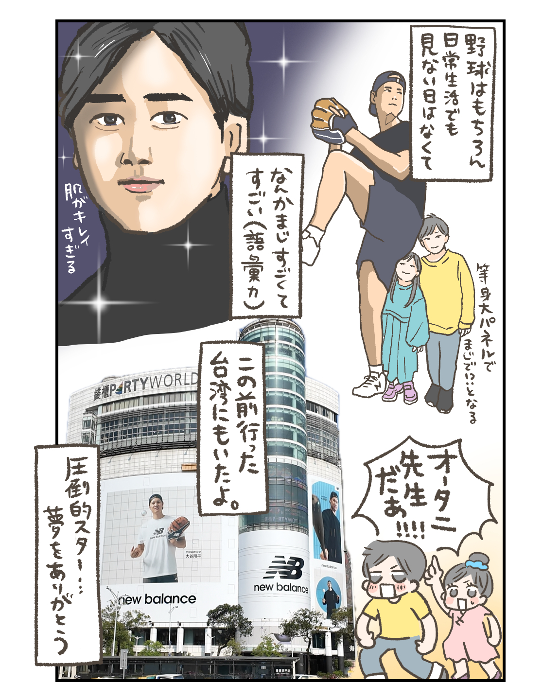 レジェンドは至る所に 育児・日常漫画 2025.04.042026.01.04 CM王、大谷先生 台湾にも居た 大谷翔平 (敬称略)、94年生まれなんだって…信じられる…? 夢をありがとう。同じ世界線に居られることがすごいなあ。