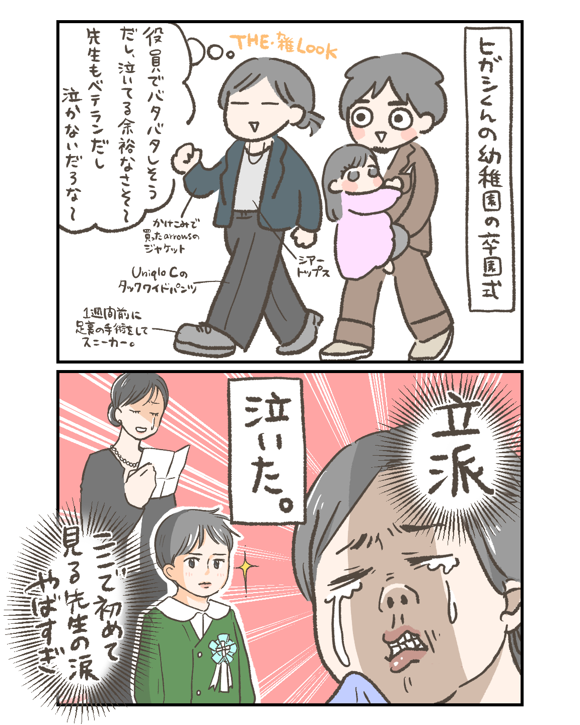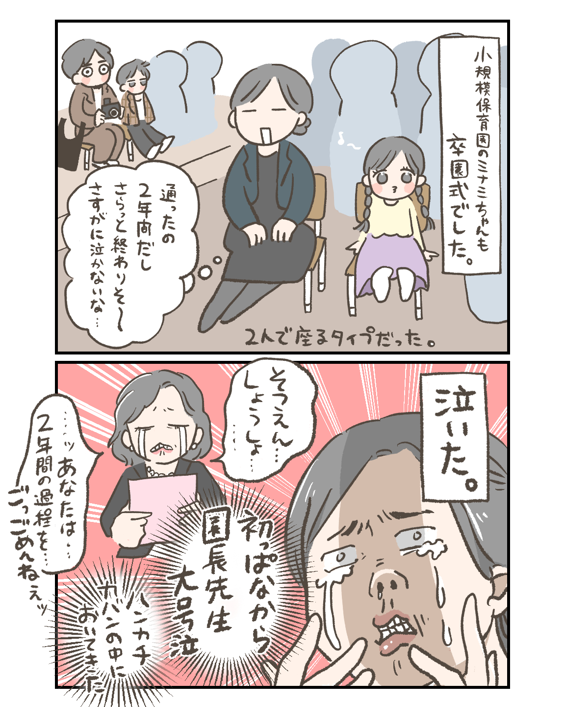 運動会でも発表会でも泣かなかったのに、卒園式はしっかり泣きました。先生の涙は反則だよ…。