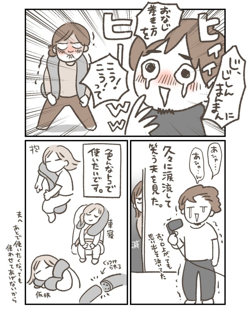 首に巻いたり、背中に当てたり、抱っこの補助にしたり……「置きクッション」じゃなくて連れて歩けるクッションって感じです!